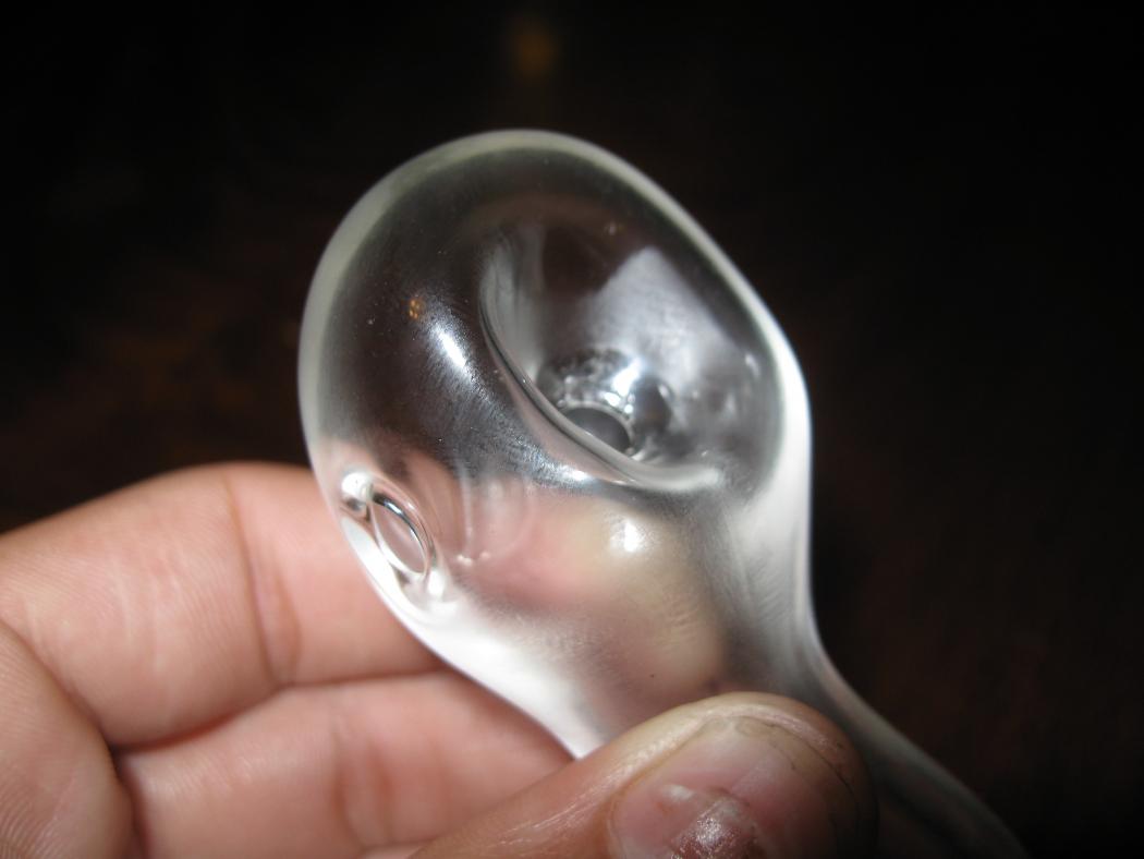 I can't tell by the pics because of the spoons being made out of clear, but it looks like your bowls are being pushed the wrong direction. You want to push your bowl angled toward the user, yours look like they might actually be angled away. That may not be the best way to explain what I am trying to say. If you're holding the mouth piece toward you when you push the bowl you want the bottom of the bowl to to be pointed toward the user. I hope I explained that right.