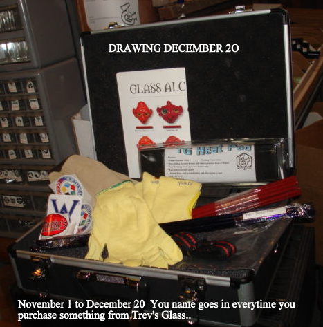 How many times is your name already in the drawing?? If you purchased from November 1 on Ebay, called us with a order or walked in the store your name went in each time for a chance to get this nice carrying case full of glass blowing related products.. Thanks to our customers for 2013.. Keep Shopping.. We keep putting things in the case, its not full yet..