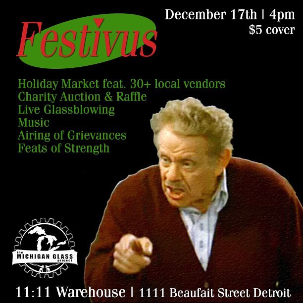 We couldn't wait a whole year to hang out again so join us for a holiday extravaganza December 17th! We still have a lot of great glass available from the main event that will be up for silent auction at the show. We will have local craft beer, bourbon drinks, live glass demos and over 40 crafty vendors. This will be a good scene for Michigan artists to meet and mingle. Hope to see you there.
