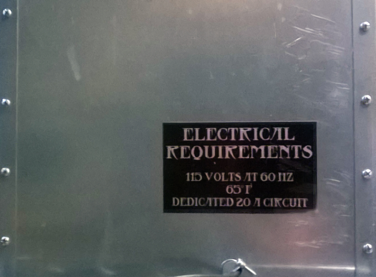 Electrical Requirements - 120V / 60Hz / 600 watts
