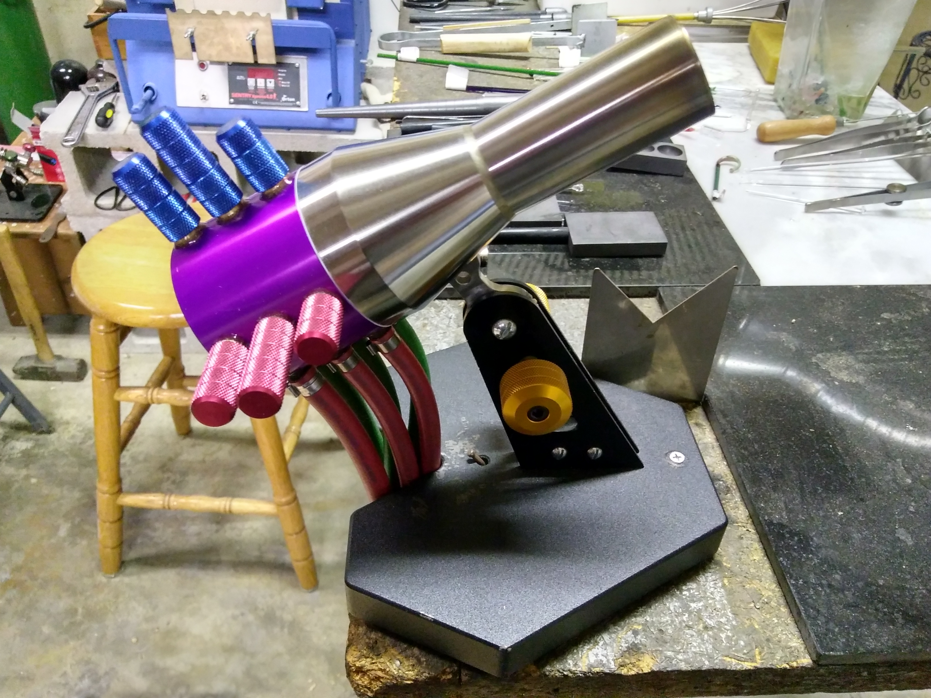 I hate to see it go, but I need the money and it's way too much torch for my purposes. I've not even spent 24 hours on this torch in total and only used the first two stages. Amazing tool, works flawlessly. I've cleaned the face plate and ports after every use like all my torches. Only minor cosmetic wear on the base plate from affixing the torch to my bench via the screw hole underneath the hoses... rather difficult because the hoses are in the way; and slight natural browning from heat on the outside at the tip. Had to wait nearly 2 months for GTT to make this and paid $4075 for it when I bought it in October of last year. Asking $200 less because of cosmetic imperfection, however it runs perfectly and has been kept in great condition. Will come with the hose assembly I got from GTT and any and all hose clamps I used. Will require signature upon delivery to ensure arrival. Price includes shipping. Thanks for looking.