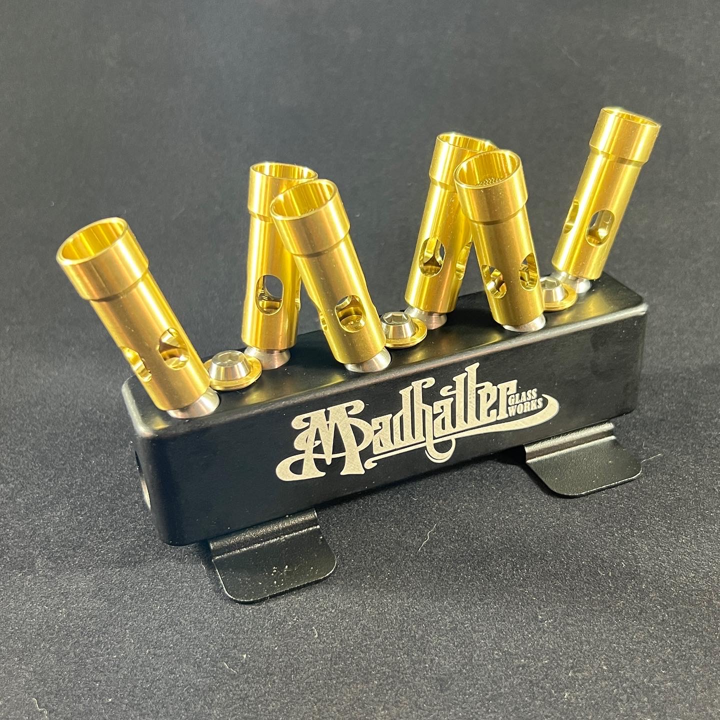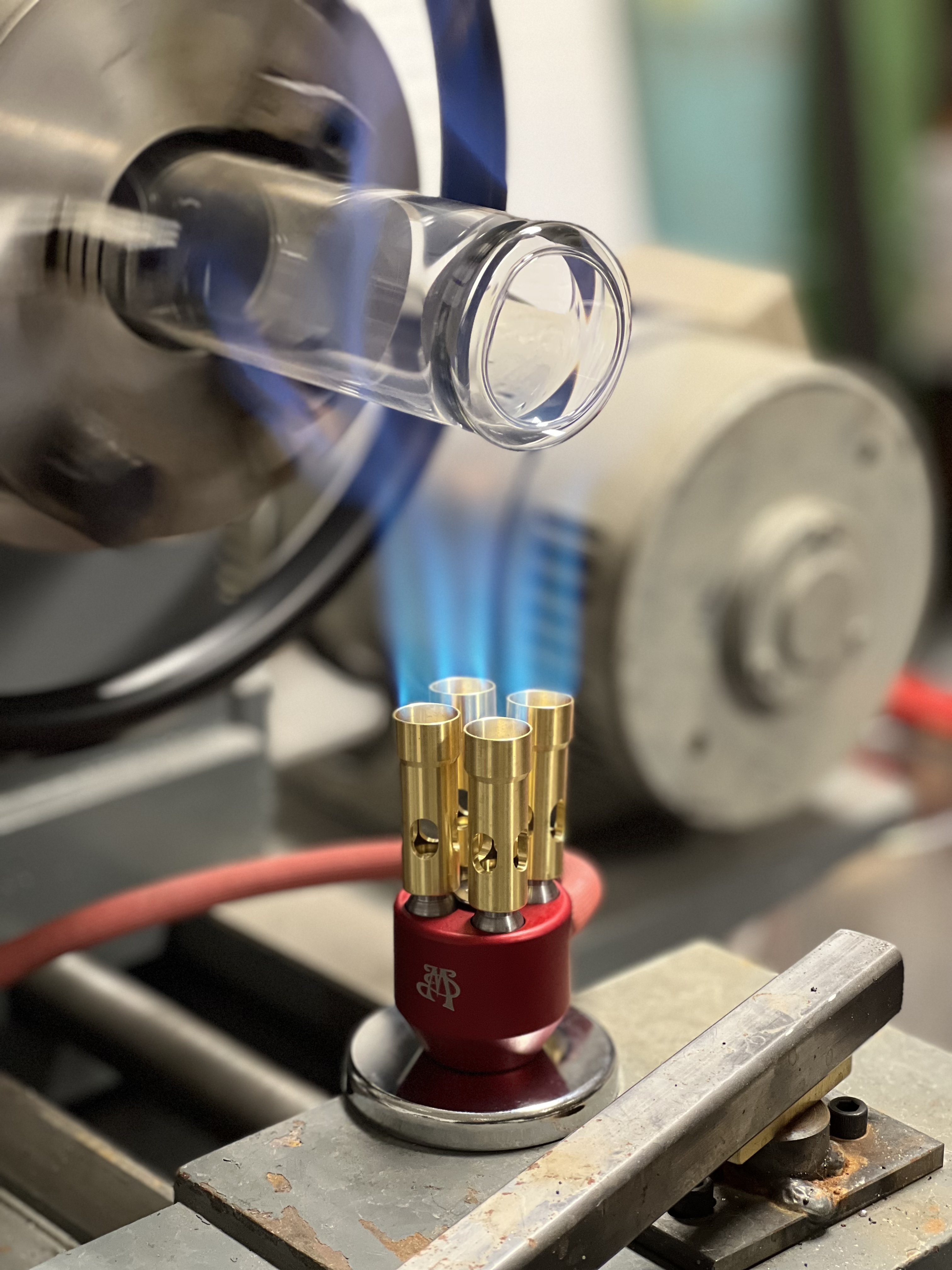 The Madhatter Flexburner has four brass burner nozzles that each swivel up to 20 degrees and stay in position. This allows the artist to customize the heat pattern of the burner from concentrated center fire to a wide “crown flame” and everything in between.