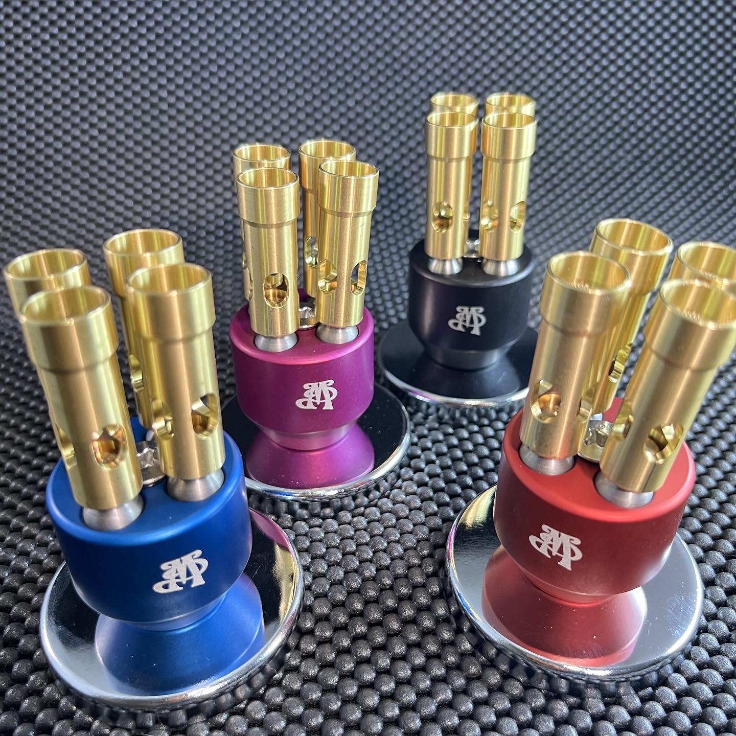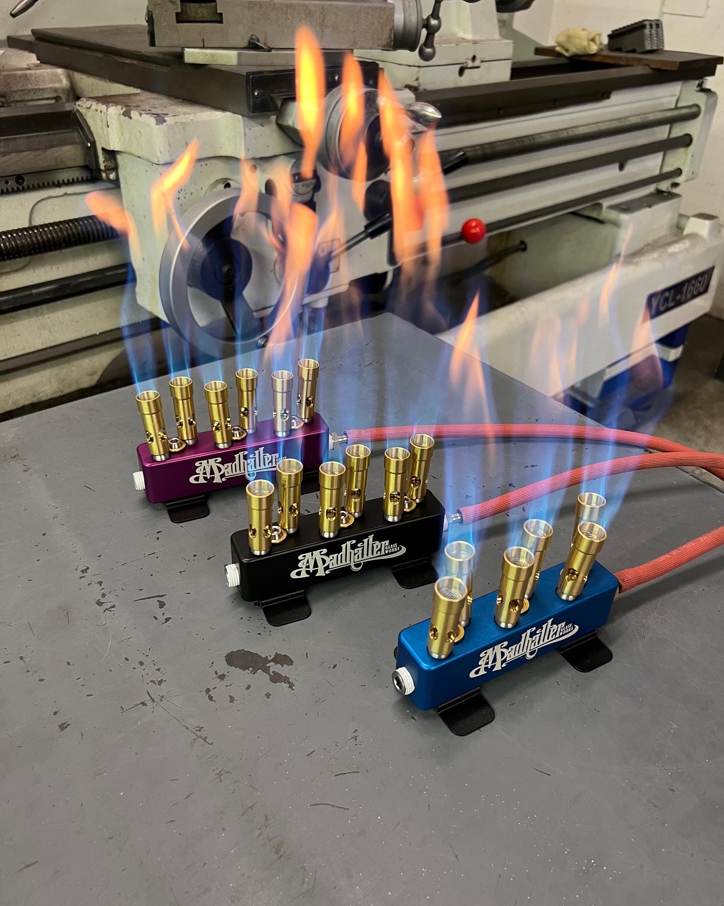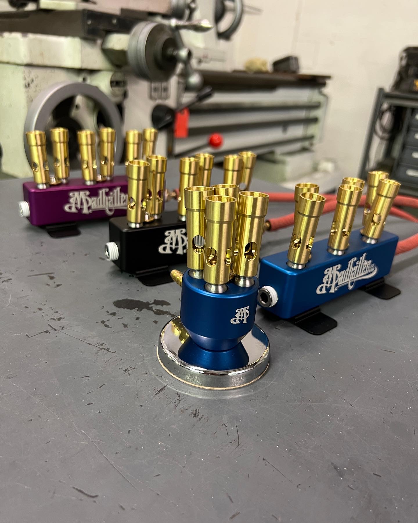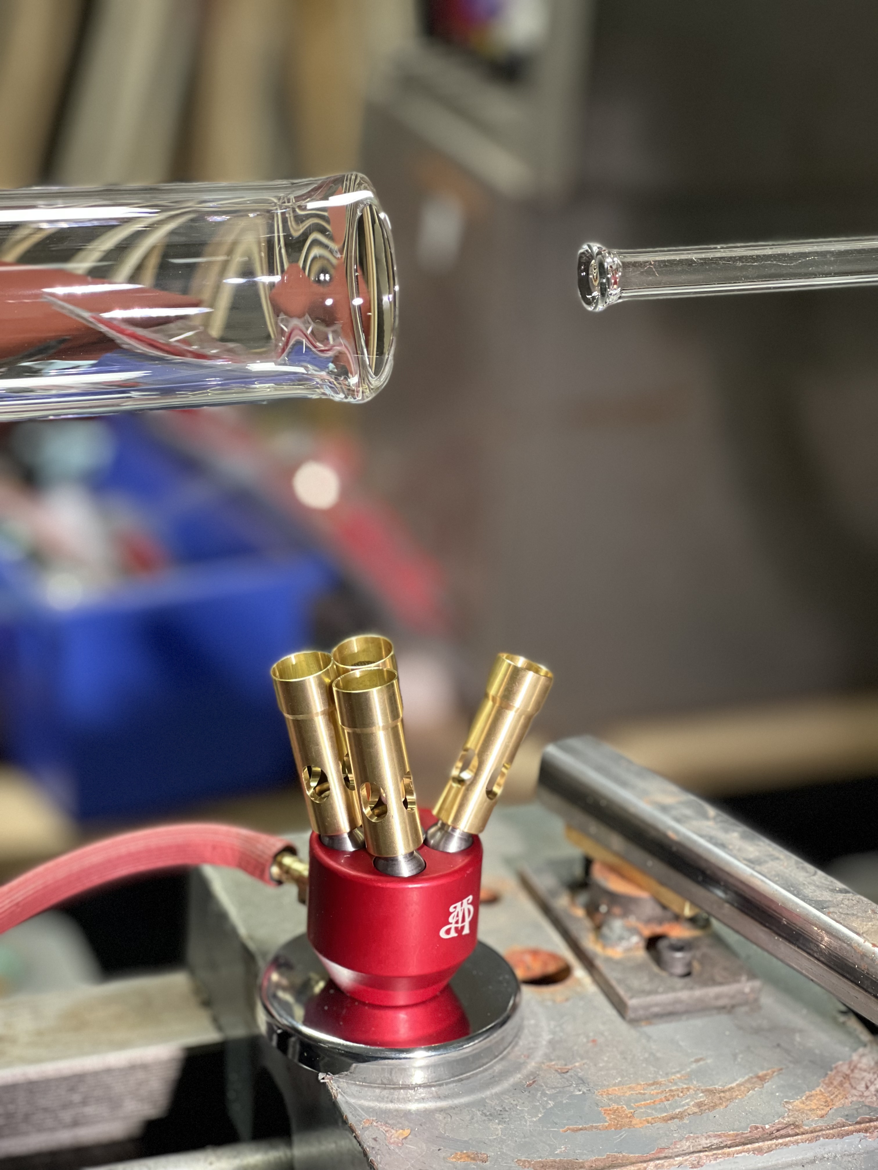 I have been focused on getting production and inventory into a sustainable groove and haven’t been on the forums in a while. We just released the new FlexburnerXL, it’s a ribbon style burner with six rotating nozzles and three input ports that is ideal for longer lathe work like bongs and vac stack pulls! This first production run is offered in black, purple and blue.