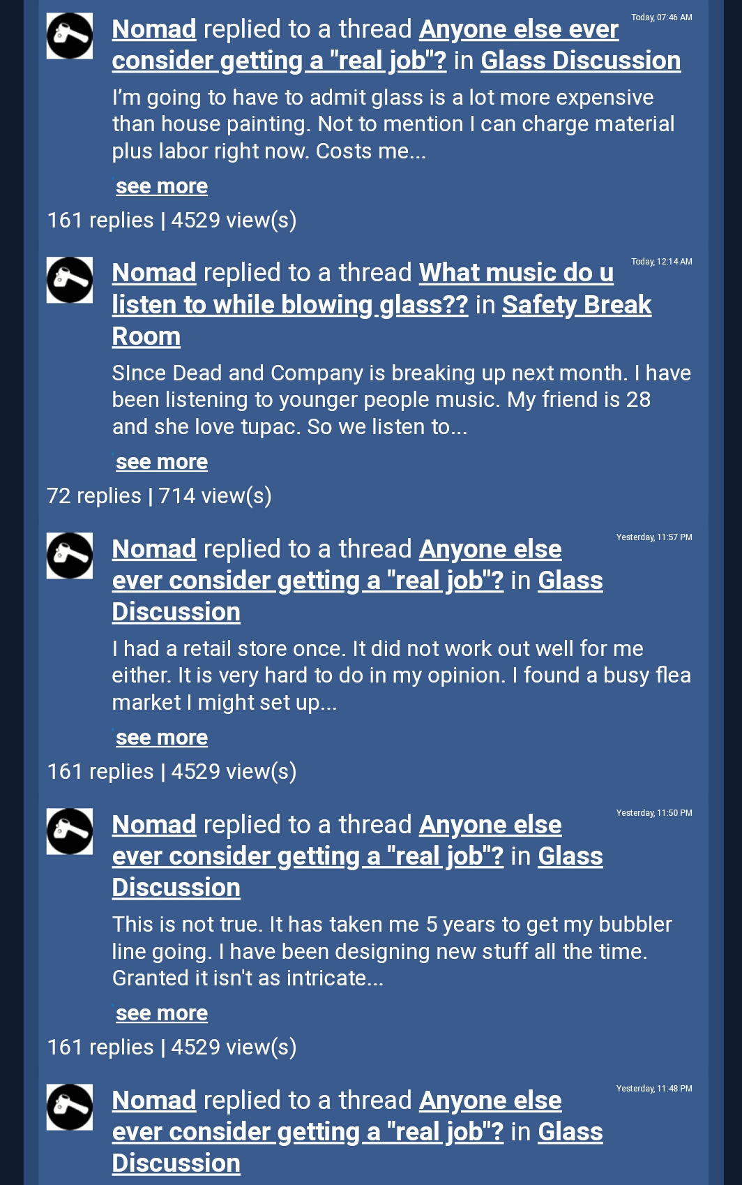 HI my name is nomad and I make bubblers on chinese glass that I buy from ABR at 3$ a lb blah blah blah blah son!!! As long as you have been doing this, you should have known your boom would not last forever. Spent all your milli money on escorts ?? tisk tisk hope everyone is having a nice day