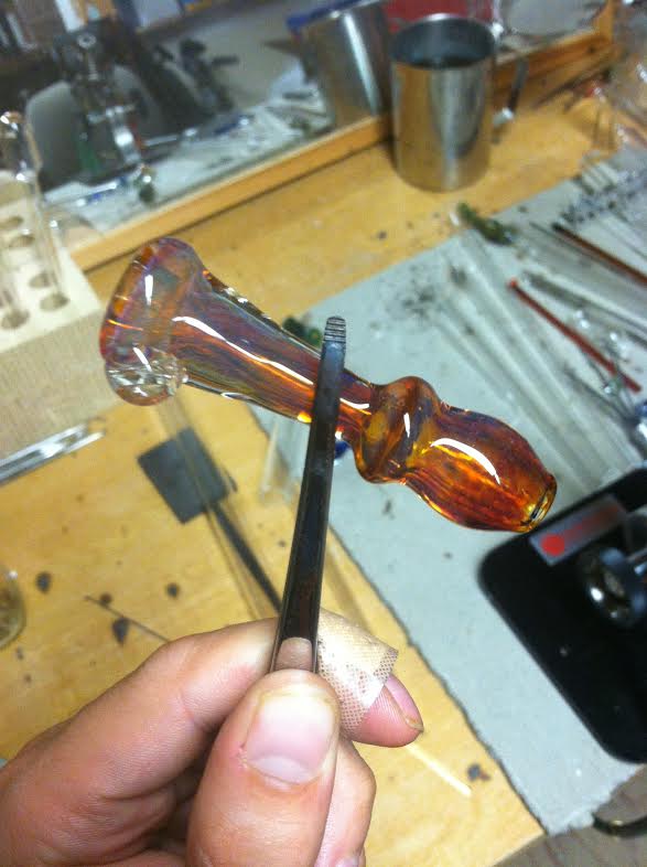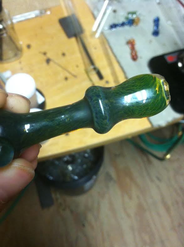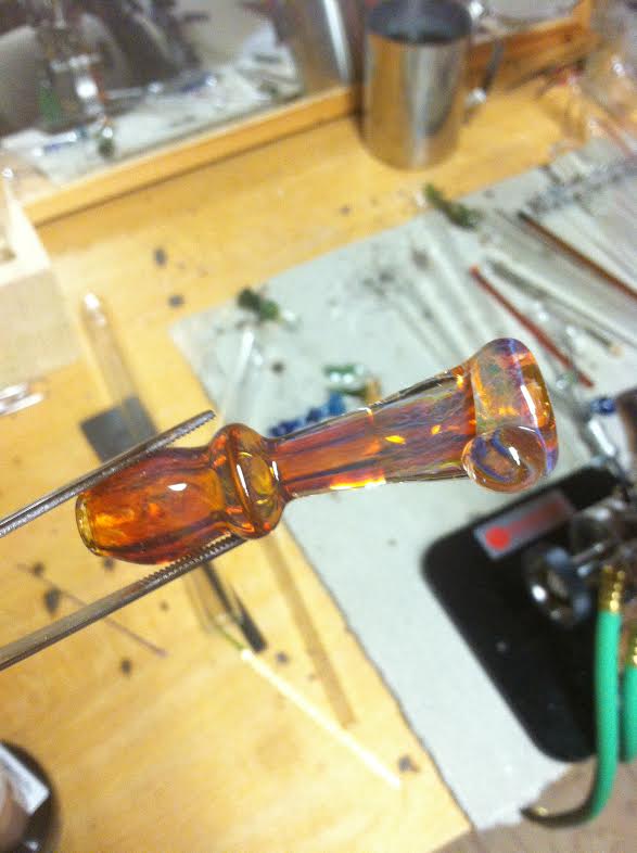 Thank you James. I am still working on the spreadsheet but when it is complete I might offer it up. I will have to spend more time behind the torch and less in front of a excel spreadsheet because I was sucking today for sure. My chillums are fogging up on the glass surface. I can't melt it away. I have only had this problem a few times before but now with the bravo it is happening all the damn time (last 2 photos). I think it is devitrification but I have never had this problem occur so often before. I don't know what I am doing wrong. Also I can't get a good bowl push on my chillums. The hole seems fine after I pop it then I go and push it in and I get this shitty hole. Damnit I am so frustrated! I am so burnt out I might take a week off to spend with my family. I hate spending 4 hours in my studio and getting nowhere. My first chillum of the day came out great until I noticed a crack it in 3 hours later. I am just going to file the day under 'at least it was some experience'. I am done being negative for the day. some shitty photos of the day...