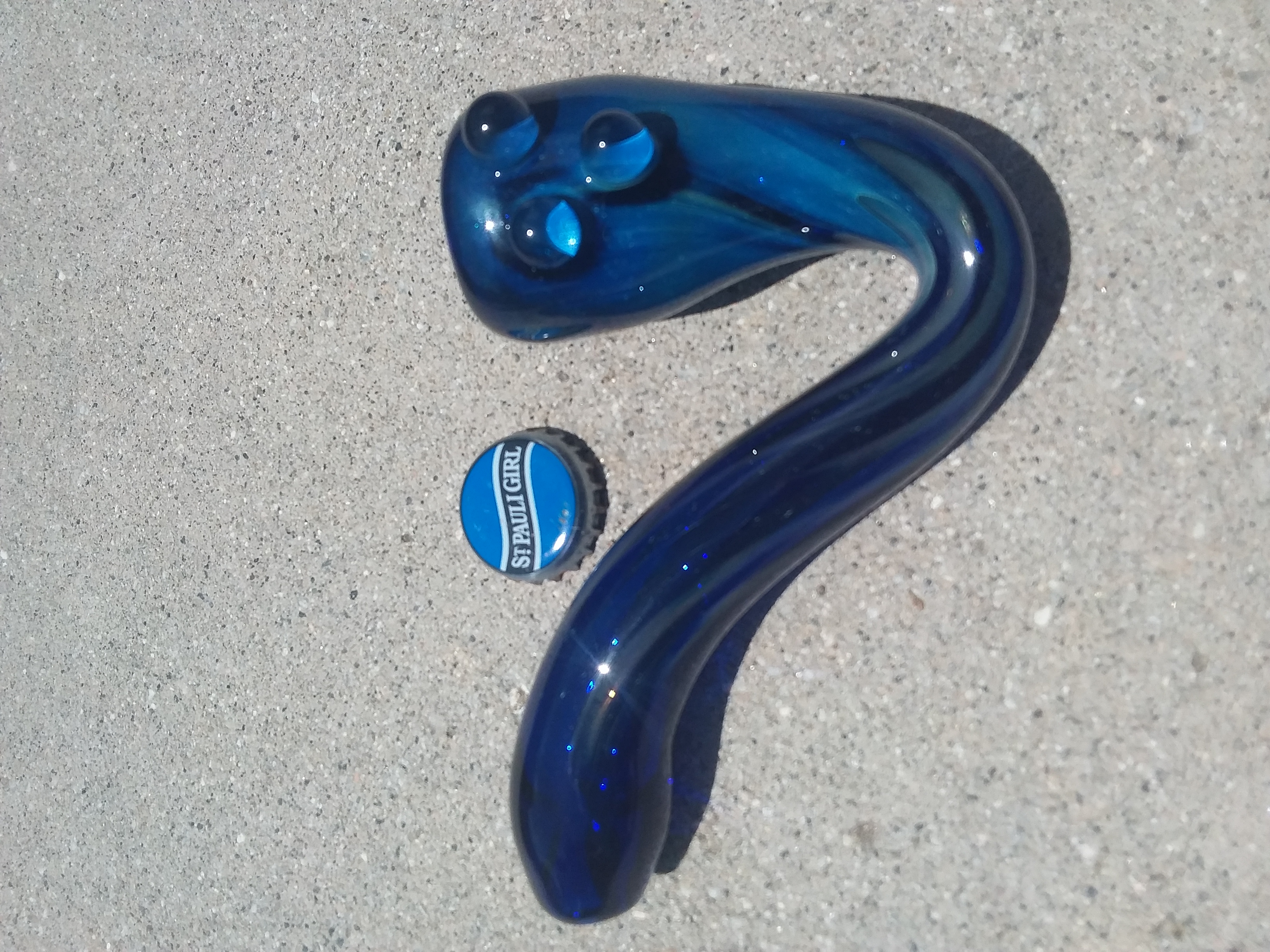 also, if i messed up and forgot to or didn't preshape the bowl area well enough i add a dot of glass or leave some of the hot sealed punty clear on. then i blow the bowl hole out of that like a kicked out carb so the hole is nice and thick and it doesn't open on itself and makes it easier to push the hole to the center even and all that.