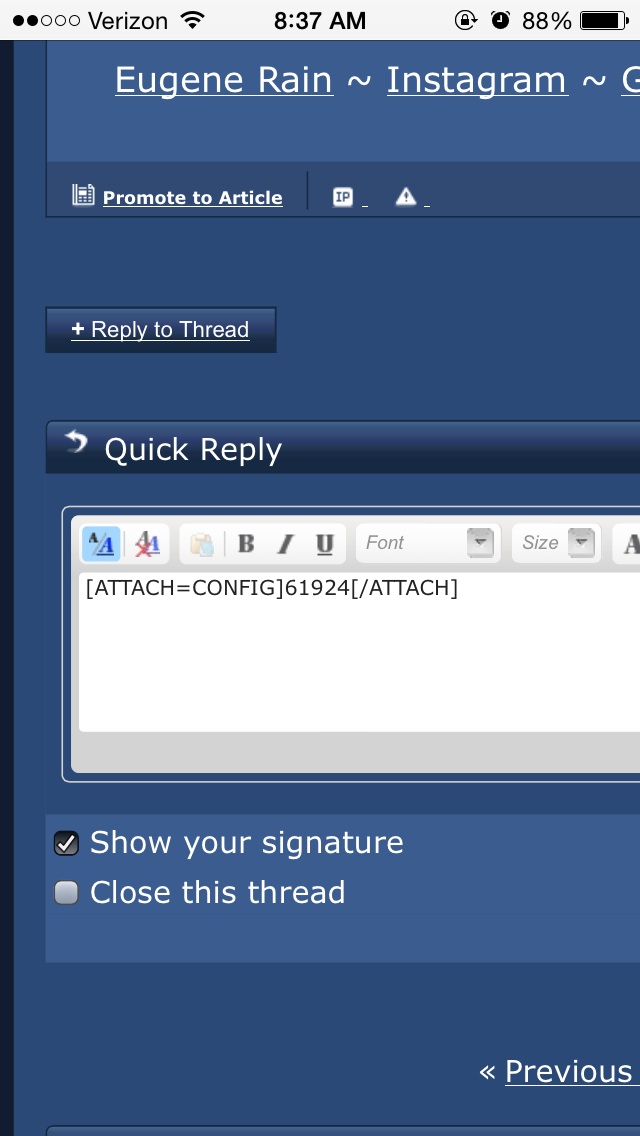 I'd be glad to help figure out the problem but I need more details. How are you accessing the forum? Safari? Chrome? Forum runner? Tapatalk?
