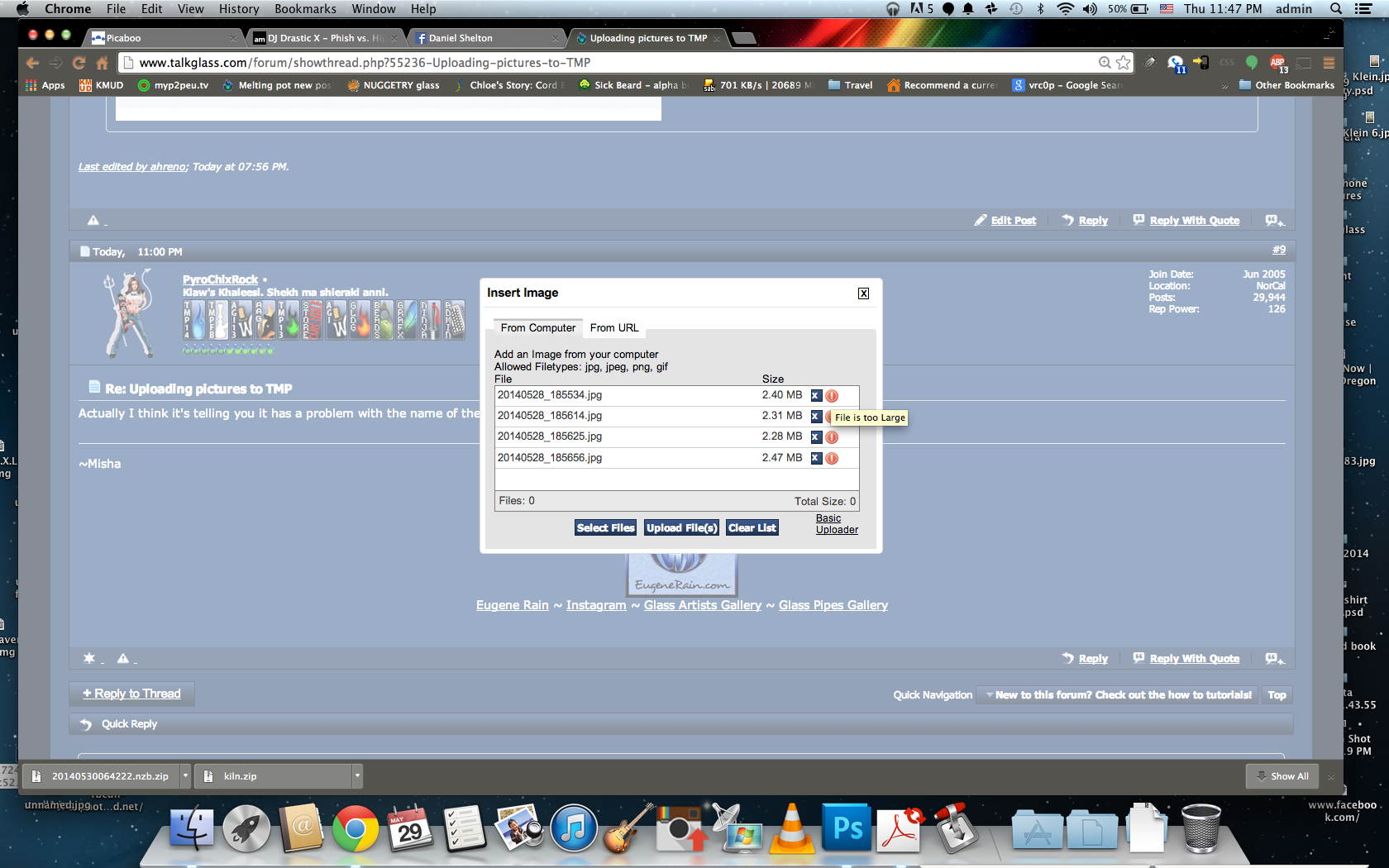 then i select the files. i realize they're 2.x mb each but its 2014... thats not that much space. I COULD be complaining that i can't upload my raw images that are 20mb.