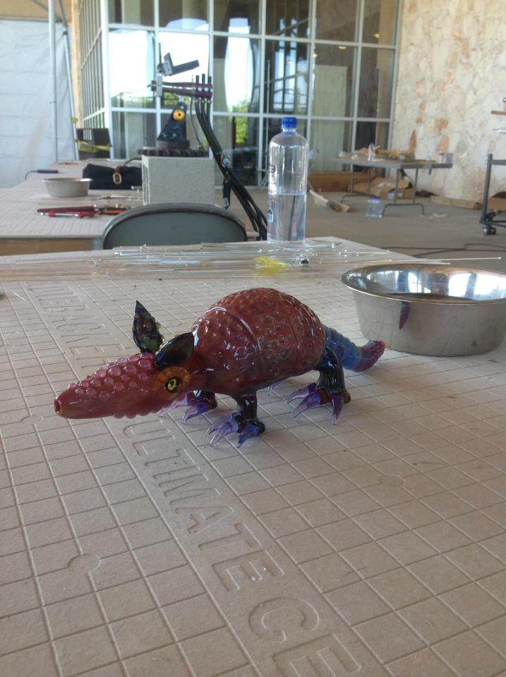 Get yours now with a $100 wholesale glass donation to the Armadillo Art Glass Initiative. This is a really great cause and now you can have a spiffy little badge to show your support. I think the flaming armadillo is the coolest badge of all, but of course I am biased.