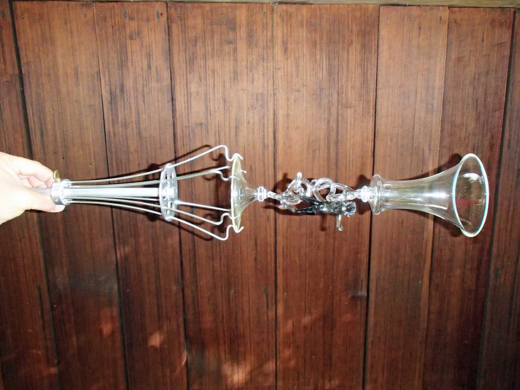 By the way, the handle is about 18" long, with an over all length of around 20. They will grab anything from a 7" bubble to a 2" bubble. Also, the green vase in the pic is a very heavy 6" by 9" soft glass vase.